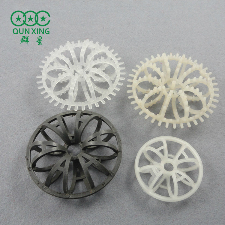 這種形如橢球的填料由許多圓環(huán)繞結(jié)而成,塑料花環(huán)填料又稱泰勒花環(huán)填料,是由12個小圓環(huán)按徑向排列而組成的一個大扁球體。由于填料的空隙處能有較高的持液量,可使塔內(nèi)液體的停留時間較長,從而增加了氣液兩相的接觸時間,提高了填料的傳質(zhì)效率?;ōh(huán)是由12個小圓環(huán)按徑向排列而組成的一個大扁球體,很類似于一個螺旋形彈簧首尾相接繞成的一個圓球體。有的小圓呈A字;有的在小圓和大圓邊沿還帶有齒;有的外圍沒有大圓圈,只是有里面的小圓組成,客戶可根據(jù)各自的要求訂購不同種類的花環(huán)。
